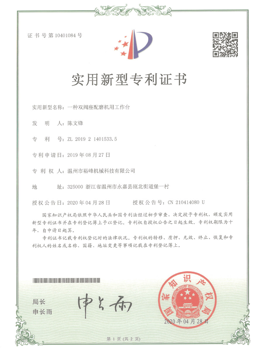 温州市裕峰机械科技有限公司成立于 2010年,位于著名的“中国泵阀之乡” 浙江省温州市。专注于非标设备、阀门压力试验设备和阀门的研究与制造。目前产品覆盖中国大部分省份与地区,我公司自主研发阀门压力试验设备每年年产量约200余台,最大口径1200,最小口径100,试压设备性能稳定、故障率低。600口径以下阀门测试台从客户下单到设备交货预计(30工作日)。曾经与各大国企央企职业院校进行深度交流与合作,近年来与欧美等地区开展数次合作,广受好评!...